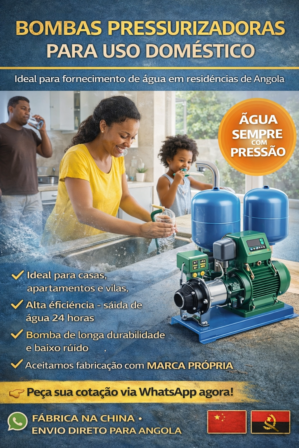 👉 Feita para água difícil, poços profundos e uso pesado em Angola
